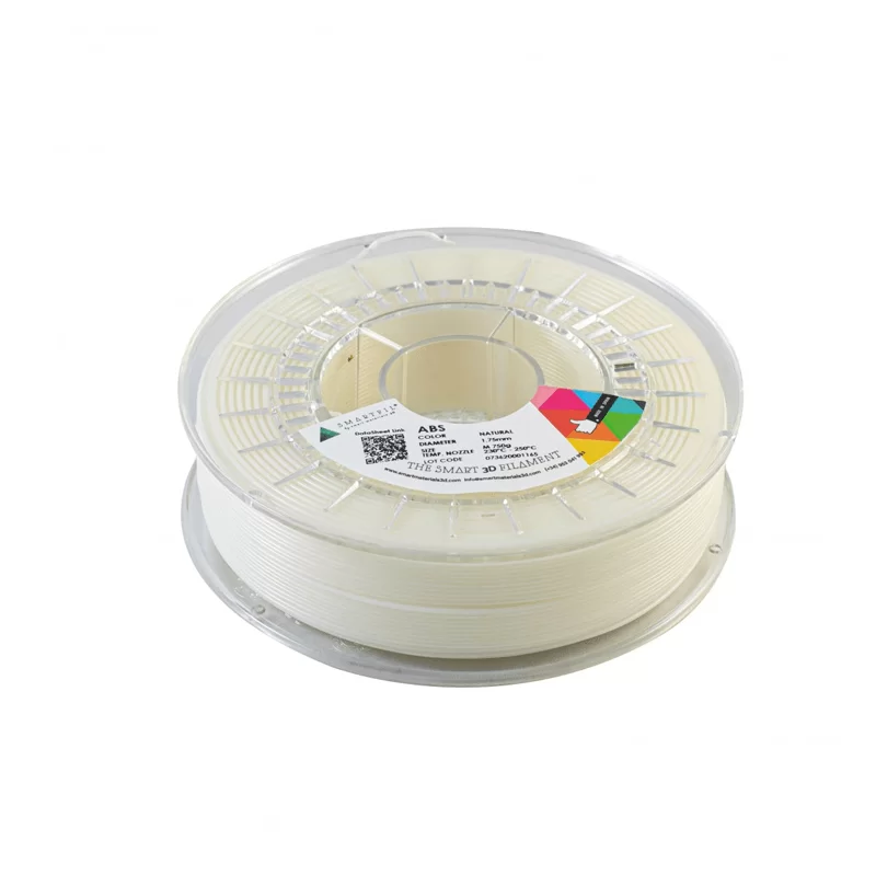 El Acrilonitrilo Butadieno Estireno es uno de los termoplásticos más usados en la impresión 3D. Sus principales características: material muy tenaz, duro y rígido, con resistencia química a la abrasión. Es soluble en acetona. No es biodegradable, y sufre con la exposición a rayos UV. Requiere cama caliente entre 80ºC y 100ºC. Como curiosidad, las piezas de LEGO están hechas con ABS.